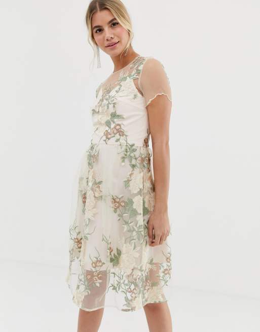 Chi Chi London Rose Gold Embroidered Midi Skater Dress Dorothy Perkins