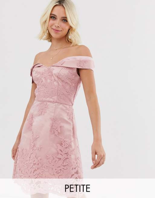 Chi Chi London Petite Bardot Minikleid Aus Jacquardspitze In Rosa Asos