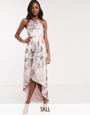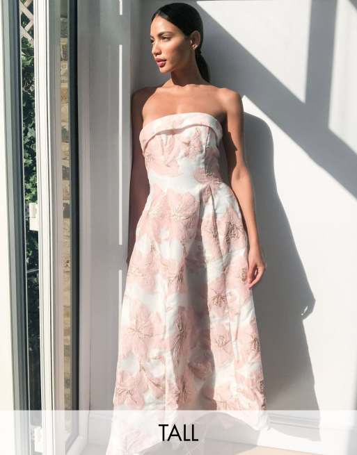 Chi Chi London Tall Tragerloses Jacquard Maxikleid In Rosa Asos